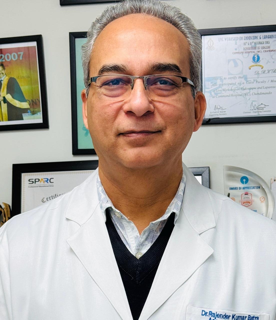 Dr. R. K. Batra has over 22 years of experience in General Surgery. He did Senior Residency in General Surgery at GMCH 32 Chandigarh. He have operated over 10,000 cases including General and Laparoscopic Surgeries. He has mastered innovative techniques on Piles disease and AWR techniques for recurrent midline hernias. He also have written many research papers.